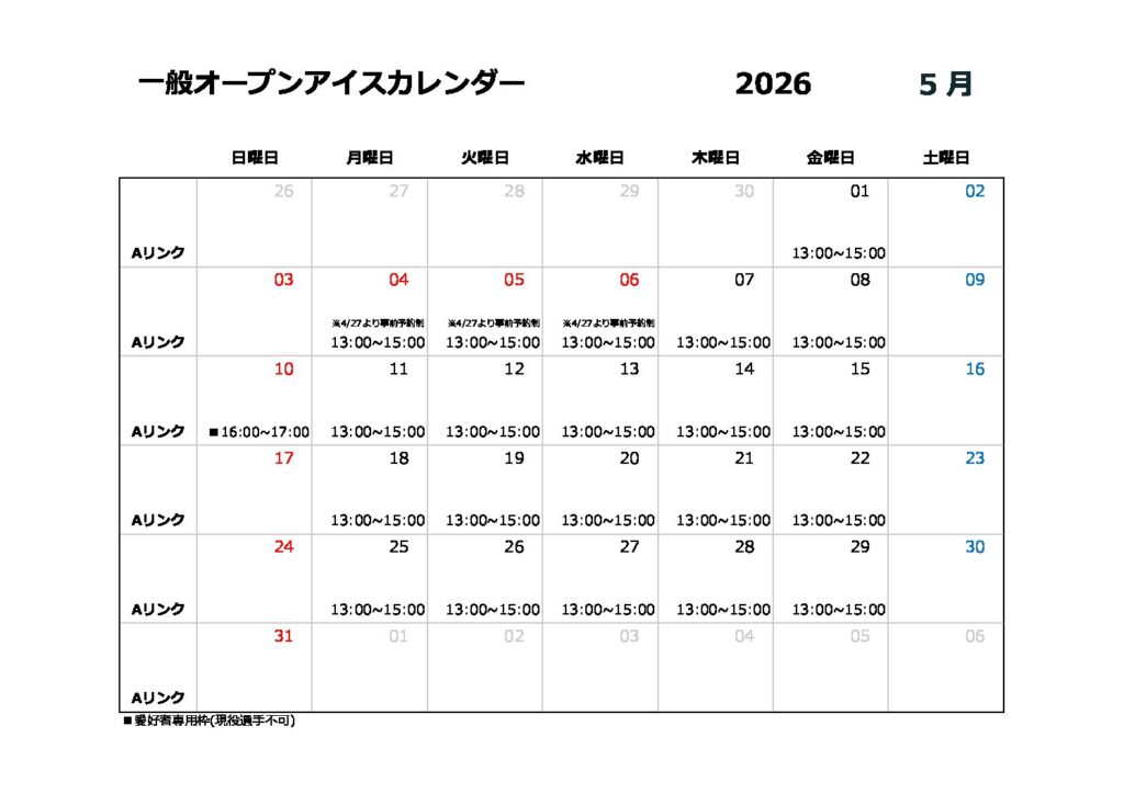 5月一般オープンアイスのご案内